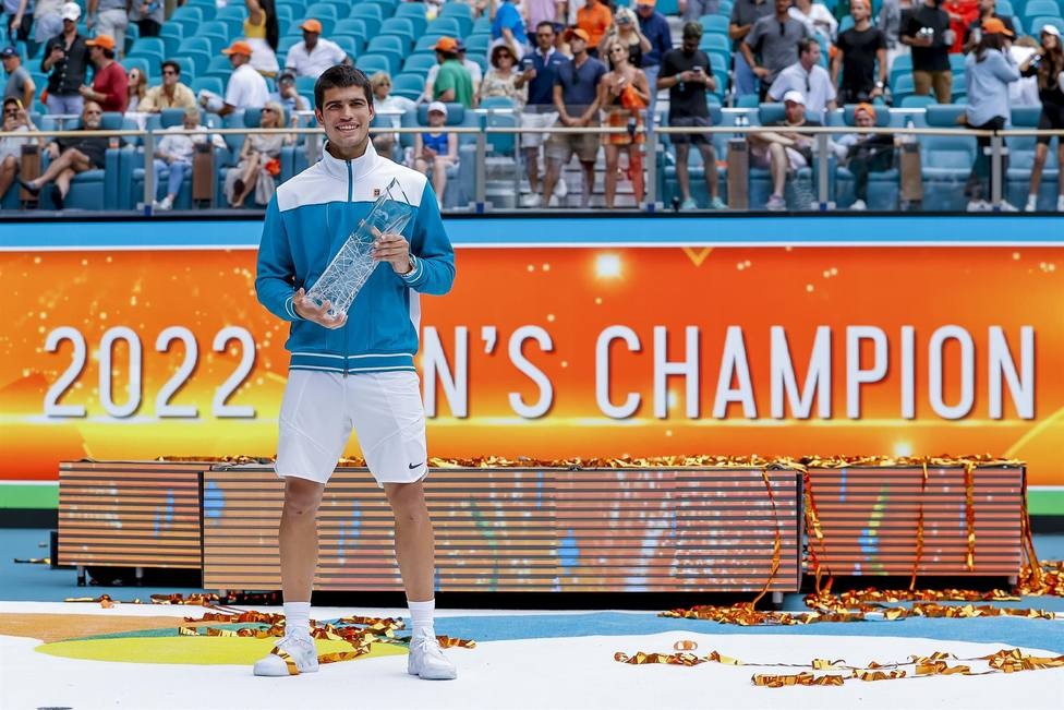 El español Carlos Alcaraz venció este domingo al noruego Casper Ruud y se proclamó campeón del Abierto de Miami, con lo que se convirtió en el tenista más joven en coronarse en la historia de este torneo y en el primer español que triunfa en el cuadro masculino de este Masters 1.000.