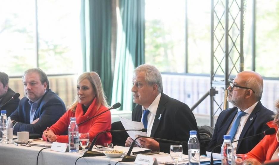 Previo a la reunión, el titular de la cartera educativa junto con sus pares provinciales, le entregó una placa conmemorativa por los 40 años de Malvinas a la ministra de Educación de Tierra del Fuego, Analía Cubino.