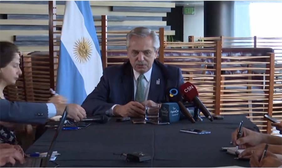 En cuanto al discurso que pronunció ayer en el marco de la cumbre, el mandatario argentino afirmó que no tuvo "ninguna reacción en contra" e inclusive contó que anoche mantuvo una conversación en la cena oficial con el presidente estadounidense Joe Biden, en donde ambos intercambiaron "unas palabras" y aseguró que "de ningún modo hubo un reproche, todo lo contrario".
