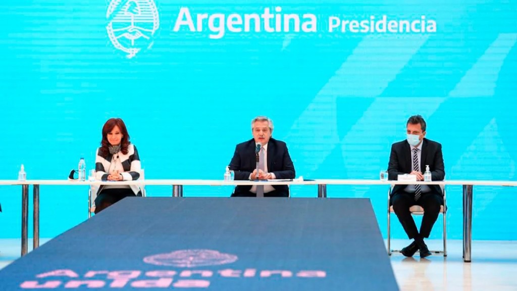 Cristina Kirchner, Alberto Fernandez y Sergio Massa durante un acto oficial en la Casa Rosada