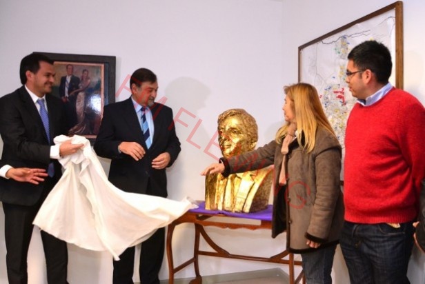 La artista Lola Figueroa donó al municipio un busto que recuerda a Néstor Kirchner, el Intendente descubrió la obra y agradeció a la artista por la donación.