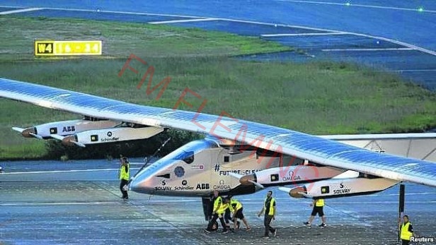 El aparato partió el 9 de marzo de Abu Dhabi para dar la primera vuelta al mundo en un avión impulsado con energía solar, a lo largo de 35.000 kilómetros y destinado a promover el uso de energías renovables.