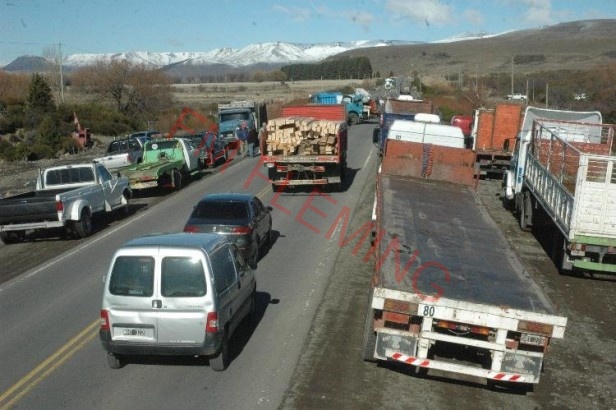 JUNÍN.-Camioneros reclaman pagos con corte de ruta. Exigen a Corfone pagos adeudados por la distribución de leña en la zona rural.