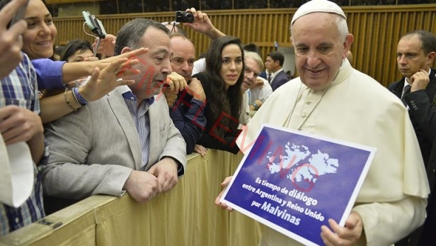 Islas Malvinas,Argentina.-Legisladores y habitantes de las Islas aseguraron que Francisco "fue engañado" para que sostuviera el cartel a favor de las conversaciones entre Argentina y Gran Bretaña. Quejas e insultos contra el kirchnerismo.