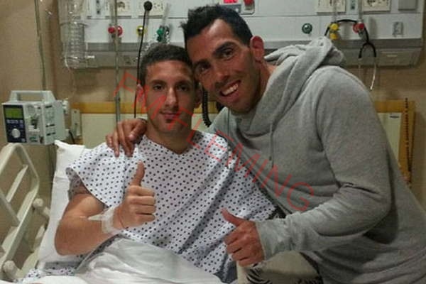 La visita tuvo lugar en la clínica Olivos ya entrada la noche, a la que Tévez llegó acompañado de su representante Adrián Ruocco, a bordo de una camioneta blanca. Tras hablar en privado por unos minutos llegaron las fotos de ambos abrazados mientras Ham permanecía en la cama de la clínica y Tévez a su lado.