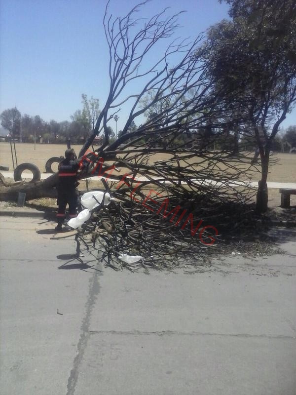 Se produjeron voladuras de chapas de viviendas en barrio 17 de Octubre, sin registrarse personas lesionadas. También se registró un incendio de pastizales sobre Ruta 28, a la altura de Finca Castellanos, con peligro para las viviendas, debido a las fuertes ráfagas de viento, desplazándose en el acto un móvil policial y personal de la Brigada Solidaria. Una hora más tarde, se logró sofocar el foco ígneo, sin surgir daños materiales, ni personas lesionadas. También se registró caída de árboles en Ruta 28 y detrás de las canchas de la UNSA, donde también hubo corte de cables, dando intervención a Defensa Civil.