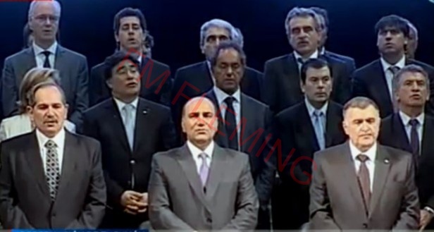 El gobernador saliente, José Alperovich, hizo el traspaso del simbólico bastón de mando a Manzur, tras lo cual ambos lloraron, en el escenario del teatro San Martín de esta capital, donde se realizaba el acto.