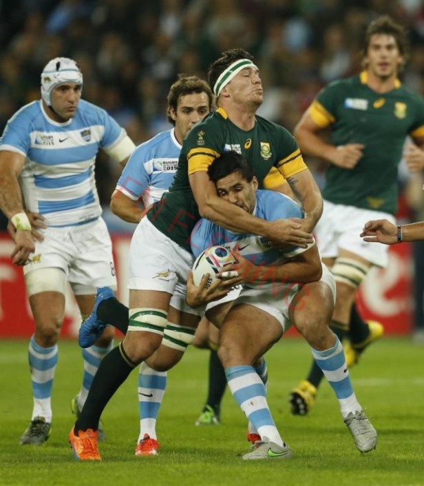 A los cinco minutos, JP Pietersen se escapó por la punta derecha y asestó el primer golpe. Argentina intentó devolver con las manos, pero los Boks respondieron con el pie, tirando kicks a la espalda de los del fondo que no terminaron en try de Bryan Habana de milagro.
