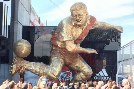 Una estatua de casi siete metros de altura confeccionada con cinco toneladas de bronce es la figura del “Feo” Labruna acompaña el paisaje en el acceso al estadio “Monumental”.