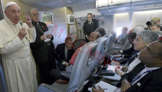 Según informó el grupo de corresponsales había decidido que se lo consultara sobre qué pensaba del resultado de las elecciones pasadas, que ganó Macri. Pero como la pregunta no fue formulada así, en forma directa, sino en un contexto más amplio, el Papa tuvo pie para evadir la cuestión. Y quedó claro que estaba determinado a no pronunciarse sobre el tema. Por un sistema de rotación interno, la pregunta fue formulada por Néstor Pongutá, de Colombia. Aquí, la transcripción: