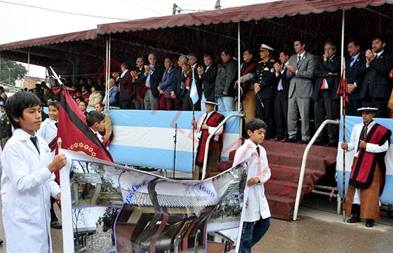 Posteriormente, el Gobernador pasará revista de tropas a la Agrupación 25 de Mayo y se entonarán las estrofas del Himno Nacional, tras lo cual, dará comienzo el desfile cívico militar, en el que participarán delegaciones escolares, de las Fuerzas Armadas y de Seguridad y agrupaciones gauchas.