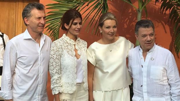 Vestido de blanco como el resto de los invitados y acompañado por su esposa Juliana Awada, Macri fue testigo del acuerdo histórico firmado en Cartagena, al igual que los presidentes Nicolás Maduro (Venezuela), Raúl Castro (Cuba), Rafael Correa (Ecuador), Michelle Bachelet (Chile), y el ex mandatario de Uruguay José Mujica, entre otros. Durante su exposición, el secretario general de Naciones Unidas, Ban Ki-Moon, afirmó que "el mundo estudia la paz en Colombia para ponerla en práctica a futuro en otros países".