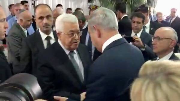 De acuerdo a la edición digital del diario israelí Haaretz, Abbas le dijo a Netanyahu durante el saludo: "Ha transcurrido tiempo desde nuestro último encuentro", a lo que el primer ministro israelí respondió: "Aprecio mucho que haya venido al funeral".