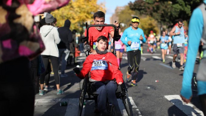 Seis maratones empujando la silla de su hijo sólo para verle sonreír