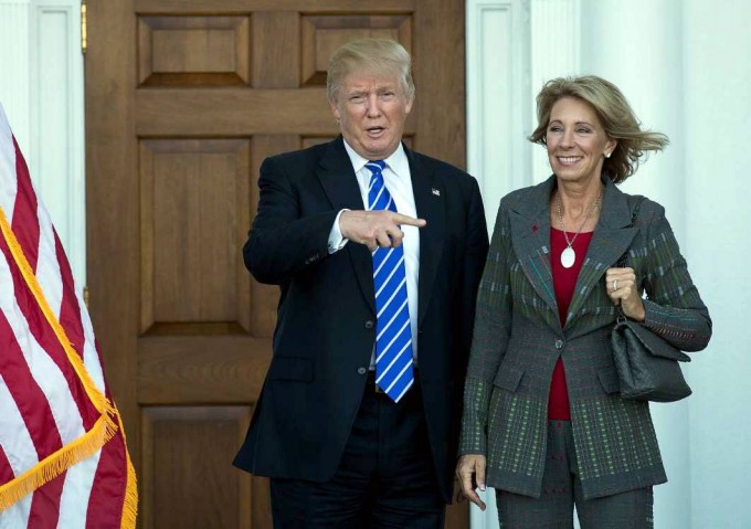 DeVos, de 48 años y oriunda de Michigan, es una conocida defensora de las escuelas privadas con subsidio estatal y es presidente de la ONG American Federation for Children.