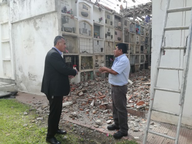Por otro lado, esta mañana se desprendió parte de mampostería y cielorraso de un sector cercano a la capilla, producto de la humedad. Al respecto, el director general de los Cementerios, Jorge Bohuid, explicó que “la estructura no corre riesgo. Los operarios resguardaron el sector para prevenir y comenzar las reparaciones