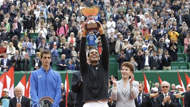El español Rafael Nadal fulminó hoy a su compatriota Albert Ramos por 6-1 y 6-3 en la final del Masters 1000 de Montecarlo y se convirtió en el primer tenista de la historia que gana diez veces el mismo torneo. Además, conquistó su título número 50 sobre arcilla, superando el récord de 49 del argentino Guillermo Vilas.