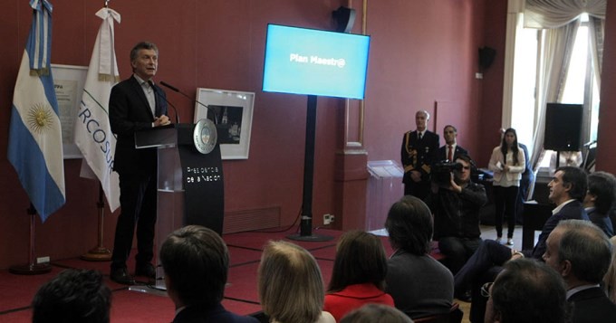 El presidente Mauricio Macri encabezó este lunes en la Casa de Gobierno el acto de lanzamiento de la plataforma web del Plan Maestr@, que se abre a la ciudadanía para que contribuya con sus propuestas a la elaboración de un proyecto de ley, donde estos aportes serán evaluados por el Ministerio de Educación para la elaboración del documento final, el cual luego enviará al Congreso en busca de mejorar el sistema educativo.