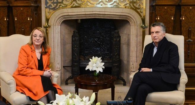 El jefe de Estado y la gobernadora se encontraron por primera vez luego de las extensas negociaciones encaradas por el ministro del Interior, Rogelio Frigerio, para asistir al distrito y de esa forma poder afrontar el pago de salarios de empleados públicos.