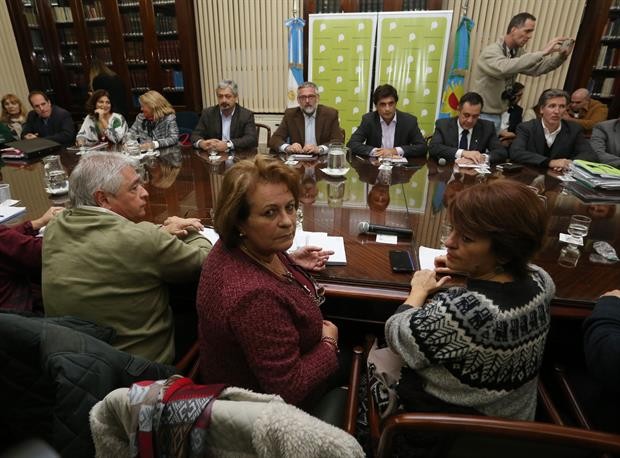 "La propuesta del gobierno sigue siendo prácticamente la misma con apenas algún punto diferencial que significa una suba de 98 pesos. Todos los gremios sentados en esta mesa hemos decidido rechazarla", dijo Mirta Petrocini. "Incluyen otra vez la cláusula por presentismo, lo vamos a discutir, pero no es una variable. Exigimos que nos paguen lo descontado. Es salvaje", añadió la titular de la FEB.
