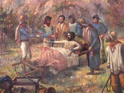 Batiéndose con su proverbial bravura logra subir a un caballo y se dirige al río Arias, donde es transportado en camilla hasta la hacienda de la Cruz, para desde allí continuar su fuga hasta El Chamical, donde fallece, pese a los cuidados de su médico, el 17 de junio de 1821.