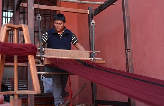 El telero José Coronel, oriundo de Seclantás, teje los típicos ponchos en el patio del Museo. Se lo puede visitar en el horario de 11 a 19.