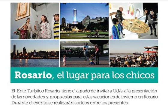 El Ente Turístico Rosario realizará la presentación de las novedades y propuestas de esa provincia para las vacaciones de invierno. Durante el evento, que tendrá lugar a las 10.30 en la Casa de la Cultura, habrá sorteos entre los presentes.