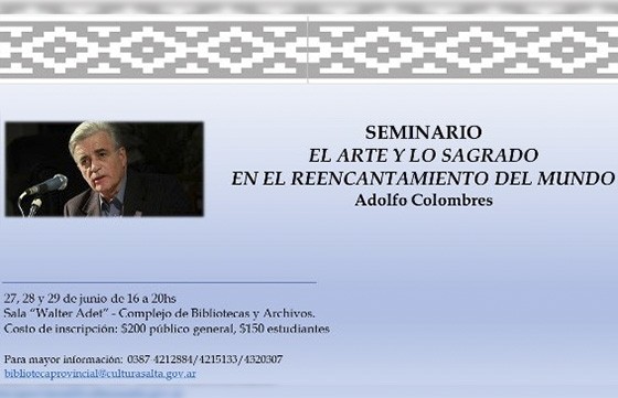 El seminario El arte y lo sagrado en el reencantamiento del mundo, a cargo de Adolfo Colombres, se dictará del 27 al 29 de junio, de 16 a 20, en la Sala Walter Adet del Complejo de Bibliotecas (Av. Belgrano 1.002).