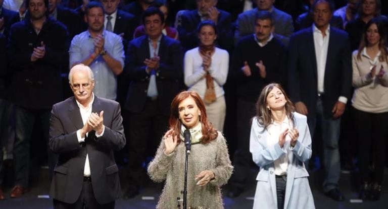La exmandataria ingresó al escenario pasadas las 17 cuando los principales candidatos de su frente Unidad Ciudadana ya se encontraba arriba de escena.