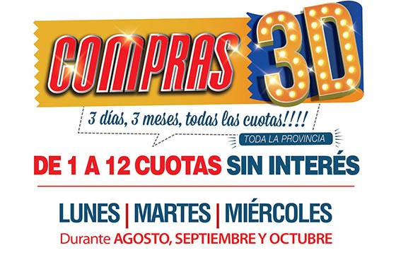 Tras la firma de un acuerdo con la Cámara de Comercio, el banco Macro y el Gobierno, se pondrá en marcha la campaña "Compras 3D" una nueva promoción de ventas en cuotas sin interés, los días lunes, martes y miércoles, durante 3 meses a partir de agosto. La adhesión de comercios cerrará hoy.