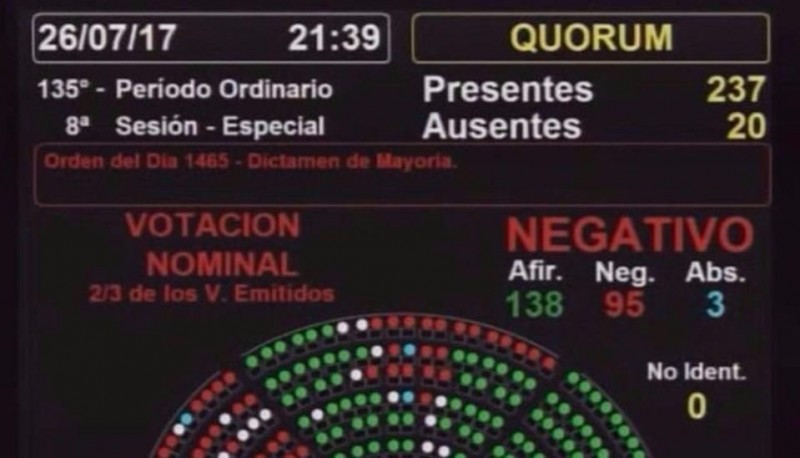 El oficialismo no logró el número necesario. le faltaron 19 votos. Salta voto a favor de la exclusión, con un voto negativo de López, Pablo Sebastián del Frente de izquierda y de los trabajadores.