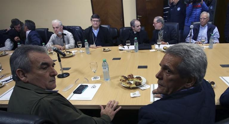Carlos Acuña y Juan Carlos Schmid se encuentran reunidos con monseñor Jorge Casaretto, para dar continuidad a la política de diálogo social y efectuar un análisis conjunto de la situación del país.