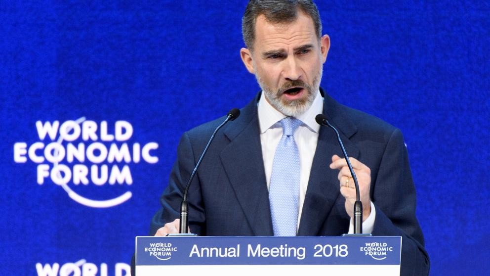 FORO DE DAVOS 2018:El monarca advierte de que el bienestar y el progreso no se lograrán con “aislamiento o división”. Felipe VI también ha destacado las virtudes de España como destino de inversión.