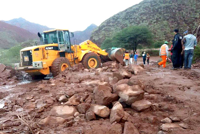 Efectivos de la Policía de Salta asistieron a familias afectadas por las lluvias en Cachi. También trabajaron sobre Ruta Nacional 68, donde se registraron derrumbes a la altura de la Garganta del Diablo.