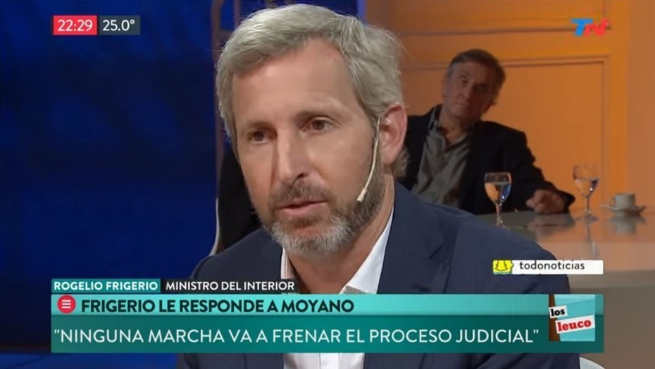 El ministro del Interior, Rogelio Frigerio, advirtió esta noche que la marcha que encabezará mañana el jefe camionero, Hugo Moyano, "no va frenar el proceso judicial" que tiene abierto el sindicalista y adelantó que, "por más exitosa que sea por la convocatoria, no va a cambiar nada".