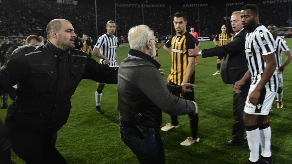 La invasión del terreno de juego del estadio Tumba ocurrió justo después de que el árbitro Kominis anulara por fuera de juego un gol del PAOK, en el tiempo añadido, lo que le hubiera quitado el liderato. Tras varias de deliberaciones, el árbitro dio finalmente el partido al PAOK. Sin embargo, el hecho de que Savidis, un magnate industrial ruso de origen griego, irrumpiera armado en el campo de juego, ha desencadenado una ola de indignación no solo en el mundo del deporte.