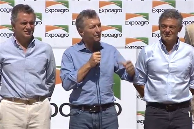 El presidente Mauricio Macri inauguró una exposición agroindustrial en San Nicolás, anunció la elimnación de cuatro registros de la producción agropecuaria y exhortó a los ruralistas a producir más alimentos para proveer al mundo.