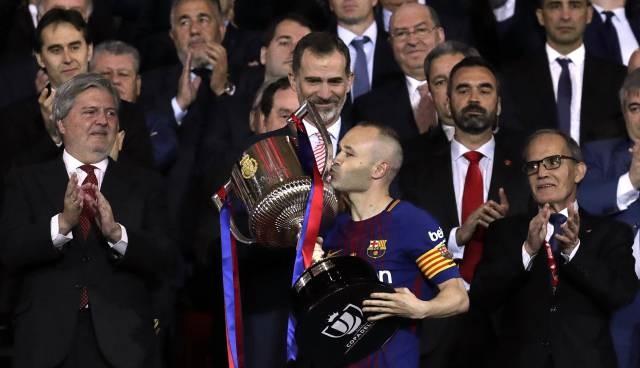 El Bar�a corona a Iniesta con el trofeo Copa del Rey