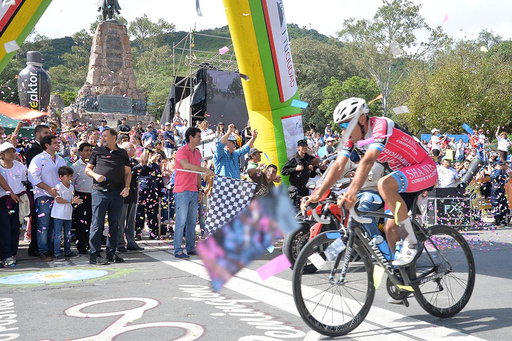 El mandatario provincial, acompañado por el empresario Osvaldo Postigo, organizador del evento, esperó a los competidores en la meta, ubicada al pie del monumento al General Güemes, y bajó la bandera a cuadros a los ciclistas que fueron arribando.