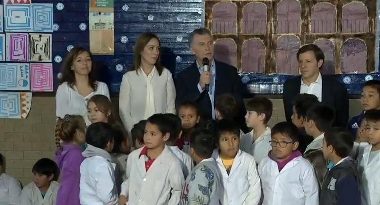 Desde San Miguel, donde encabezó un acto junto a la gobernadora bonaerense María Eugenia Vidal, el primer mandatario presentó la Red de Escuelas de Aprendizaje, un programa que promueve mejoras en el sistema educativo de la provincia de Buenos Aires, al tiempo que aprovechó para llevar tranquilidad luego de varias jornadas de movimientos bruscos del dólar, y en un contexto de aumento de los servicios públicos.