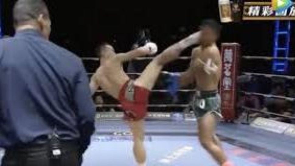 Terrible nocaut en una pelea de kickboxing china que finalizó un combate que no llevaba más de dos minutos.