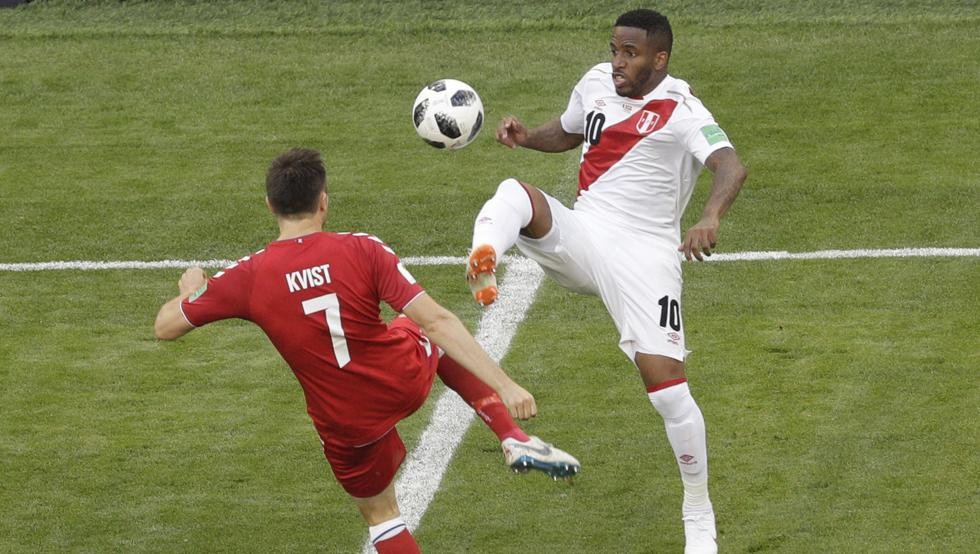 En otra acción del extremo del Watford inglés, Carrillo lanzó en profundidad a Jefferson Farfán, cuyo disparo desde el interior del área lo envió in extremis el central Simon Kjaer (29).