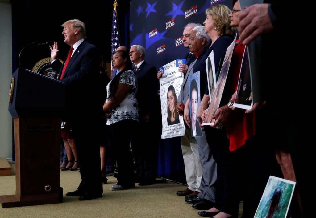 "Estos son los ciudadanos estadounidenses permanentemente separados de sus seres queridos, porque los mataron inmigrantes ilegales criminales. La palabra en la que tienen que pensar es 'permanentemente", dijo Trump.
