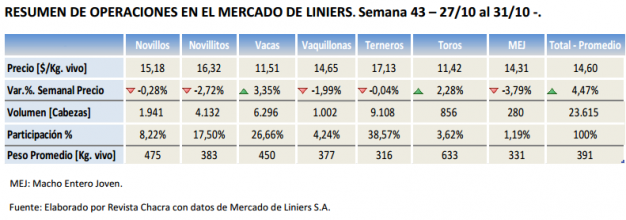 La suba fue impulsada principalmente por las vacas que se mostraron firmes y por terneros que cotizando en $ 17,13 lograron mantener su precio.