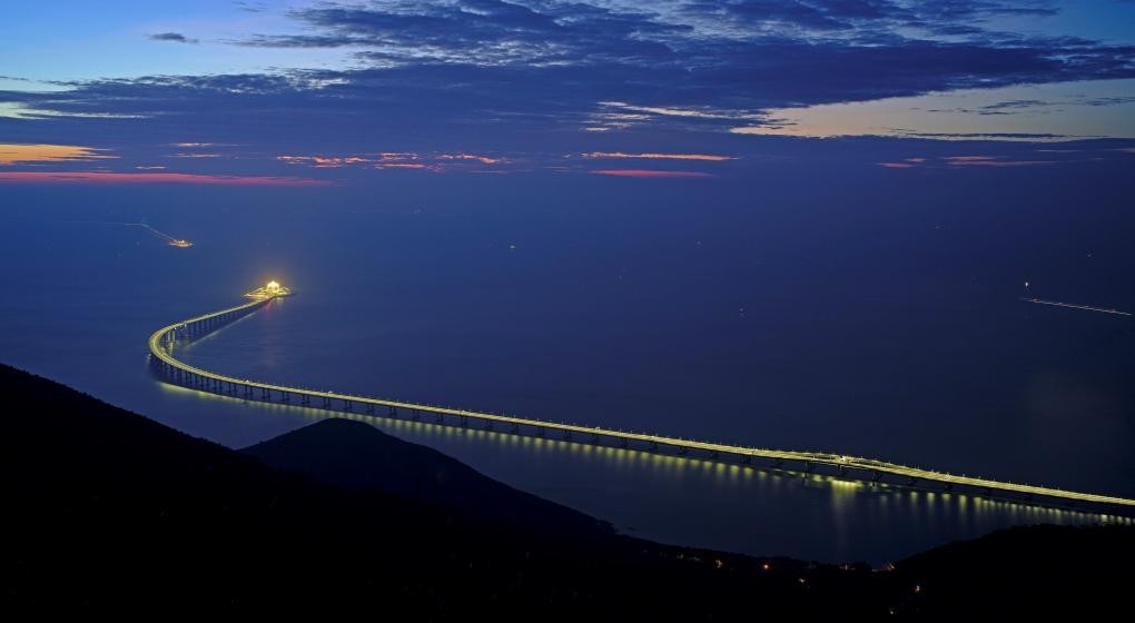 Tiene 55 kilómetros y une a Hong Kong, Zhuhai y Macao. Costó más de 20.000 millones de dólares. La construcción se levanta sobre pilares gigantescos e islas artificiales.