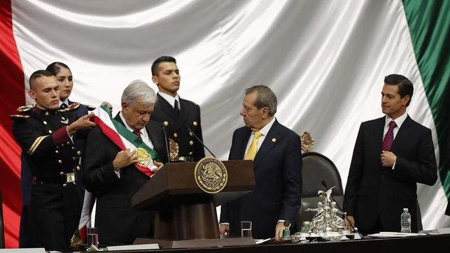 López Obrador, quien será presidente de 2018 a 2024, ha recibido la banda presidencial de manos de Muñoz Ledo, presidente de la Cámara de Diputados y uno de los padres de los movimientos de izquierda en México al separarse en 1988 del Revolucionario Institucional (PRI), el partido de Peña Nieto.