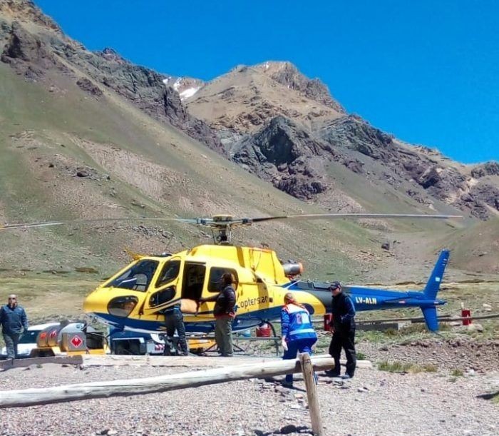 Al ser alertada la situación se activó el protocolo de evacuación y se trasladó al deportista hasta el helipuerto ubicado en Horcones, allí fue trasladado por una ambulancia y médicos del Servicio de Emergencias Coordinado de la provincia para brindarle atención en caso de requerirse equipos de mayor complejidad.