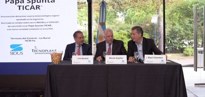 “La PAPA SPUNTA TICAR® significa para nosotros la culminación de un proceso de muchos años para el logro del primer evento biotecnológico vegetal del país. Llegamos primeros y eso implica seguir trabajando en aportar soluciones al sector” explicó el presidente del Grupo SIDUS, Marcelo Argüelles, durante un evento que se realizó hoy en la Ciudad de Buenos Aires y que contó con la presencia de los secretarios de gobierno de Ciencia, Tecnología e Innovación Productiva, y de Agroindustria, Lino Barañao y Luis Miguel Etchevehere respectivamente, además de científicos, productores, empresarios y dirigentes del sector.