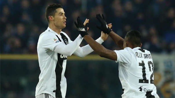 Cristiano Ronaldo (izda) celebra con Alex Sandro el gol conseguido.Foto:Paolo Magni/EFE