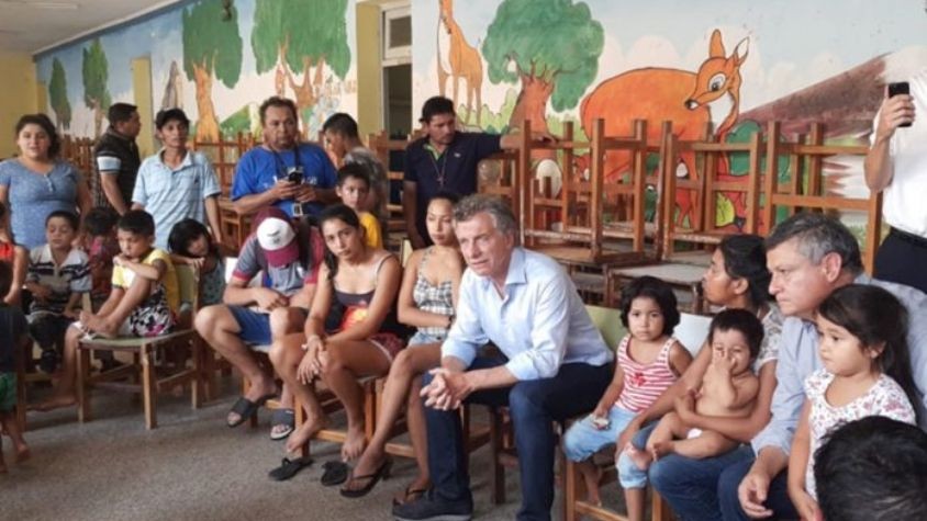 Macri realizó la visita acompañado por los ministros de Defensa, Oscar Aguad, y de Seguridad, Patricia Bullrich, entre otras autoridades. Posteriormente Macri se trasladó en helicóptero a la localidad portuaria de Barranqueras, donde recorrió un centro de evacuados y conversó con los afectados.